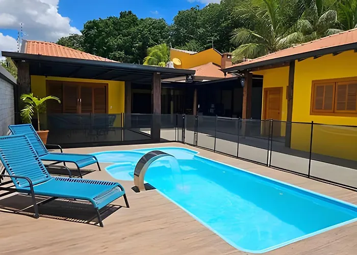 Guests of Recanto Sabia, Area Gourmet Climatizada, Piscina villa are expected to arrive for check-in around 12:00 and check out not later than 13:00. - ❓